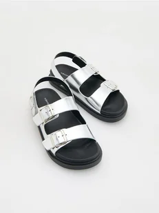 Reserved - Sandały z metalicznym efektem - srebrny