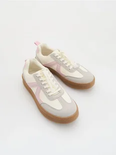 Trampki o klasycznym kroju, wykonane z imitacji skóry.