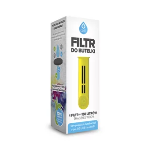 Wymienny filtr do butelki sprawia, że woda kranowa staje się smaczna i idealna do picia. Usuwa z niej smak i zapach chloru. Jeden filtr zapewnia nam do 150 l wody miesięcznie i zastępuje 300 półlitrowych jednorazowych opakowań. Unikatowy, wymienny co miesiąc filtr węglowy, usuwa z wody kranowej nieprzyjemny smak i zapach chloru. Pozostawia niezmienioną ilość minerałów naturalnie w niej występujących (głównie wapnia i magnezu), dzięki czemu woda zachowuje cenne dla zdrowia pierwiastki. Korzystając z produktów wielokrotnego użytku, nie tylko zmniejszamy liczbę odpadów i przyczyniamy się do ochrony środowiska, ale także oszczędzamy pieniądze i miejsce.