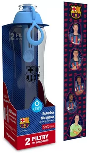 Butelka filtrująca Dafi SOFT 0,5 litra, edycja limitowana FC Barcelona, niebiańska z 2 filtrami węglowymi Butelki filtrujące Soft FC Barcelona łączą funkcjonalność i styl w jeden innowacyjny produkt. Dzięki herbowi FCB umieszczonemu na pojemniku, zaawansowanej technologii filtracji, designerskiemu opakowaniu i naklejkom, butelka Dafi zapewnia wyjątkowe wrażenia zarówno entuzjastom piłki nożnej, jak i osobom dbającym o nawodnienie. Niezależnie od tego, czy pijesz łyk podczas treningu, w biurze, czy kibicujesz FC Barcelonie z trybun, butelki filtrujące w barwach klubu to zwycięski wybór zarówno na boisku, jak i poza nim. Opakowanie butelki filtrującej SOFT z limitowanej edycji FC Barcelona zostało starannie zaprojektowane, aby podnieść emocje związane z otrzymaniem i rozpakowaniem butelki filtrujące. Charakteryzuje się nowoczesnym designem, nawiązującym do kolorów i estetyki FCB.