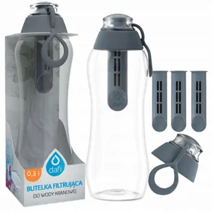 Zestaw butelka filtrująca Dafi Soft 0,3 L szara - 4 filtry i zakrętka Wydajność filtra: 150 L Filtr węglowy usuwa z wody nieprzyjemny smak oraz zapach chloru...