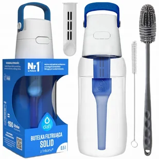 Butelka filtrująca Dafi SOLID 0,5 L niebieska + szczoteczka sylikonowa oraz czyścik do rurek i ustników Wydajność filtra: 150 L Filtr węglowy usuwa z wody ni...