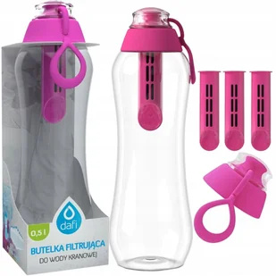 Zestaw butelka filtrująca Dafi Soft 0,5 L różowa - 4 filtry i zakrętka Wydajność filtra: 150 L Filtr węglowy usuwa z wody nieprzyjemny smak oraz zapach chlor...