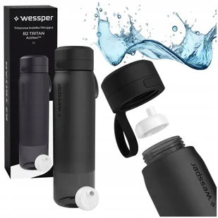 Marka: Wessper Model: B2 TRITAN Actitex™ Typ: Butelka filtrująca Kolor: Czarny Materiał: Tritan™ Pojemność produktu: 1 l Wysokość produktu: 28 cm Średnica pr...