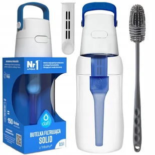 Butelka filtrująca Dafi SOLID 0,5 L niebieska + szczoteczka czyszcząca Wydajność filtra: 150 L Filtr węglowy usuwa z wody nieprzyjemny smak oraz zapach chlor...
