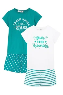 Bawełniana piżama z krótkimi spodniami i krótkimi rękawami (4 części): Śliczna piżama z krótkimi spodniami z nadrukiem w 4-częściowym zestawie. Świetne piżamy dziewczęce w kompl. 4-częściowym. Koszulki zdobione napisem.