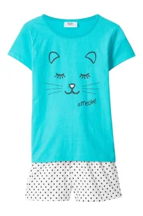 Piżama z krótkimi spodniami z czystej bawełny organicznej (2 części): Piżama ze słodkim nadrukiem z czystej bawełny organicznej. Śliczna piżama dziewczęca: wygodny t-shirt z uroczym nadrukiem, w komplecie z krótkimi spodenkami z gumką w talii, z nadrukiem na całości w kropki.