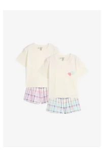Piżama z krótkimi spodniami z czystej bawełny organicznej (4 części): Urocza dziewczęca piżama z krótkimi spodniami w 4-częściowym komplecie.