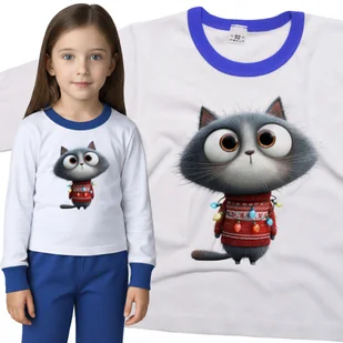 Piżama dziecięca długi rękaw z nadrukiem Kot Z Lampkami Choinkowymi Śmieszna Mina Biało-Niebieska 110/116 nr wzoru: nr wzoru: 122914135212 Twoje dzieck...