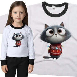 Piżama dziecięca długi rękaw z nadrukiem Kot Z Lampkami Choinkowymi Śmieszna Mina Biało-Czarna 110/116 nr wzoru: nr wzoru: 122912135212 Twoje dziecko z...