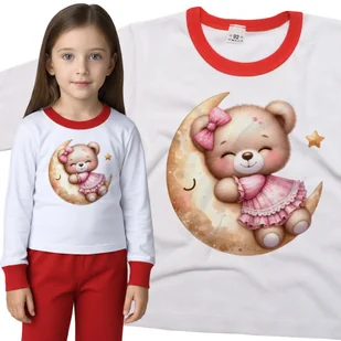 Piżama dziecięca długi rękaw z nadrukiem Miś W Różowej Sukience Tulący Księżyc Dzień Misia Biało-Czerwona 98/104 nr wzoru: nr wzoru: 122715135198 Twoje...