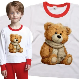 Piżama dziecięca długi rękaw z nadrukiem Misiek Pluszowy Pluszak W Szaliku Jesień Dzień Misia Biało-Czerwona 98/104 nr wzoru: nr wzoru: 122715135123 Tw...