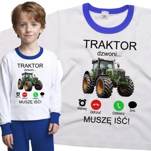 Piżama dziecięca długi rękaw z nadrukiem Muszę Iść Traktor Dzwoni Ciągnik Dla Rolnika Biało-Niebieska 98/104 nr wzoru: nr wzoru: 122714134806 Twoje dzi...