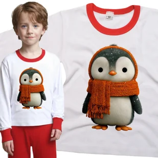 Piżama dziecięca długi rękaw z nadrukiem Słodki Mały Pingwin W Szaliku Zima Śnieg Święta Biało-Czerwona 98/104 nr wzoru: nr wzoru: 122715135225 Twoje d...