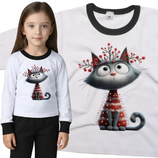 Piżama dziecięca długi rękaw z nadrukiem Szary Kot Kotek Ubrany W Lampki Choinkowe Święta Biało-Czarna 110/116 nr wzoru: nr wzoru: 122912135214 Twoje d...