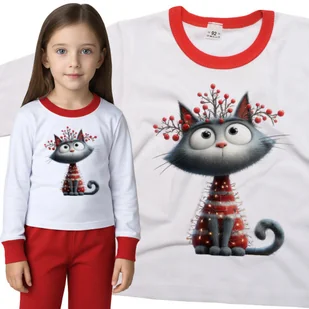 Piżama dziecięca długi rękaw z nadrukiem Szary Kot Kotek Ubrany W Lampki Choinkowe Święta Biało-Czerwona 98/104 nr wzoru: nr wzoru: 122715135214 Twoje ...