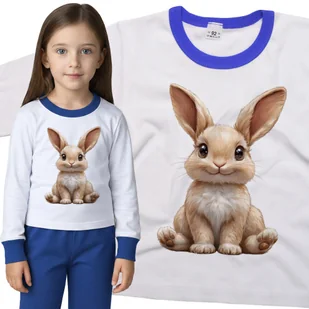 Piżama dziecięca długi rękaw z nadrukiem Słodki Wesoły Beżowy Królik Zając Króliczek Zajączek Biało-Niebieska 110/116 nr wzoru: nr wzoru: 122914135204 ...
