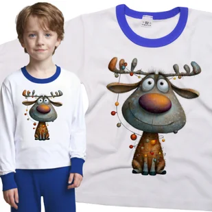 Piżama dziecięca długi rękaw z nadrukiem Wesoły Łoś Ubrany W Lampki Choinkowe Święta Biało-Niebieska 98/104 nr wzoru: nr wzoru: 122714135215 Twoje dzie...