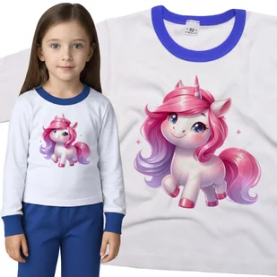 Piżama dziecięca długi rękaw z nadrukiem Wesoły Różowy Fioletowy Jednorożec Dla Dziewczynki Biało-Niebieska 86/92 nr wzoru: nr wzoru: 122514135207 Twoj...