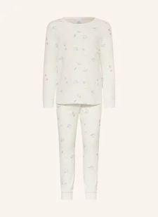 Dla dziewczynek Koszulka: Prosty krój. Okrągły dekolt z pikotkami i ozdobną wstążką. Długie rękawy. Elastyczne ściągacze na zakończeniach rękawów.