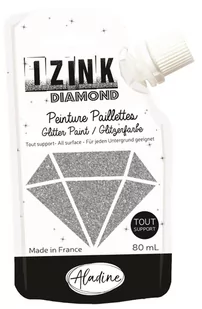 Aladine Izink Diamond – farba brokatowa – ultraskoncentrowana z cekinami – dekoracja do każdego podłoża – DIY i kreatywny czas wolny – wyprodukowana we Francji – butelka na napoje miękka 80 ml – srebrna