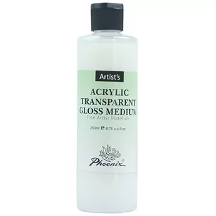Medium przeźroczyste, błyszczące. Produkt do farb akrylowych. Mleczna, płynna konsystencja, która po użyciu staje się przeźroczysta. Po wymieszaniu z farbami akrylowymi nadaje im efektu błysku a także zwiększa ich płynność. Producent: Phoenix. Pojemność: 250 ml.