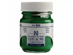 Talens Gouache Extra Fine Quality farba wodna wysycha w ciągu zaledwie kilku minut cechuje się wysoką właściwością przylegania do powierzchni wolnych od tłuszczu i strukturze porowatej (papier, tektura, drzewo, tynk, gips, wyroby ceramiczne) zastosowanie do różnych celów: wykonywanie gwaszy (obrazy temperowe), nakładanie farby bez ruchów pędzla, ale również nadaje się do znakowania, pieczętowania i drukowania po wyschnięciu praca ma atrakcyjny wygląd przypominający matowy aksamit kolor: 600 Green HTML # 008659 CMYK # 87, 24, 81, 9 RGB # 0, 134, 89 pojemność tubki: 50 ml produkt holenderskiej firmy Talens