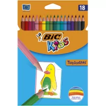 BIC Kids Evolution to zestaw trwałych kredek w efektownych kolorach. Wyprodukowane na bazie wysokiej jakości żywicy syntetycznej, odpowiadającej za wyjątkową elastyczność kredek. Wyposażone w odporny na złamania grafit, którego pigmentowa baza gwarantuje uzyskanie efektownych, żywych kolorów o satysfakcjonującym stopniu nasycenia. Ergonomiczna, sześciokątna obudowa kredek pozwala na odpowiedni, nie męczący dłoni chwyt. Kredki idealne dla dzieci - łatwe do temperowania, nietoksyczne.