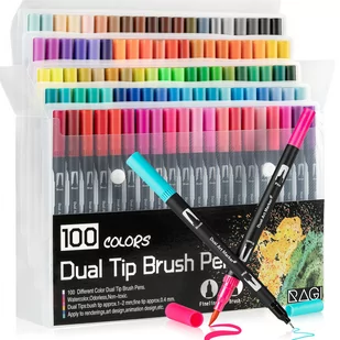 Zestaw dwustronnych markerów akwarelowych - 100 kolorów Zestaw zawiera pełną paletę odcieni tęczy: to aż 100 barwnych kolorów!
