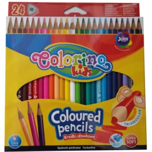 Kredki ołówkowe trójkątne 24 koloryTrójkątne kredki Colorino Kids, tak jak wszystkie nasze kredki ołówkowe, posiadają niezwykle miękki rysik, dzięki któremu rysowanie to prawdziwa przyjemność. Dodatkową ich zaletą jest trójkątny, ergonomiczny kształt. , który idealnie wpasowuje się w dłoń i zapewnia komfort rysowania. Zestaw 24 kolorów