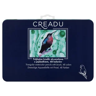 Idealne do szkiców, notatek artystycznych i kreatywnych projektów, umożliwiają tworzenie efektownych dzieł zarówno dla początkujących, jak i zaawansowanych twórców. Zelety zestawu zestaw: 48 kredki akwarelowe + pędzelek trójkątny kształt dla wygodnego trzymania intensywne, kryjące kolory możliwość użycia na sucho lub na mokro – efekt akwareli uniwersalne zastosowanie do wszystkich technik rysunku trwała i solidna konstrukcja kredek metalowe pudełko Idealny prezent wysoka jakość – doceniana przez amatorów i profesjonalistów, szeroki wybór – markery, kredki, szkicowniki i akcesoria, dostępność – produkty pojedynczo i w praktycznych zestawach, idealne do domu, szkoły i kreatywnej zabawy. Creadu to ceniona marka produkująca przybory dla artystów, pasjonatów tworzenia i dla dzieci dopiero zaczynających swoją przygodę ze sztuką. Odkryj pozostałe produkty marki Creadu! Zobacz więcej