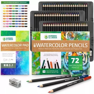 Zestaw Do Rysowania, Kredki Akwarelowe - 72 Kolory, Szkicownik, Temperówka - Norberg & Linden