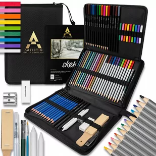 - Profesjonalny zestaw przyborów, ołówków i kredek do szkicowania renomowanej marki ARTISTIQ.