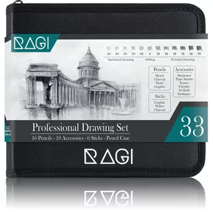 RAGI Zestaw do Rysowania Szkicowania Profesjonalny zestaw ołówków 33w1 Węgiel Ołówki w Etui