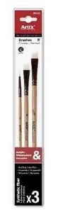 Profesjonale pędzle malarskie 3szt. Profesjonalny pędzel z korpusem z naturalnego lakierowanegodrewna i czarną końcówką Metalowa skuwkai białe syntetyczne włosie Długość: 20 cmMożna je stosować z farbami akwarelowymi, akrylowymii temperowymi Blister po 3 sztuki: 2 pędzlez skuwką i pędzel płaski o. . .