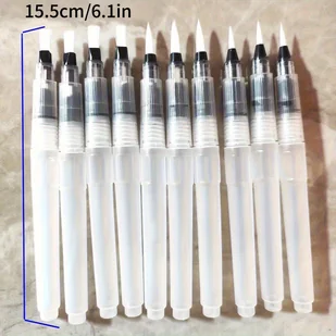 TEMU 10 szt. Białe Pędzle do Akwareli z Miękkim Włosiem – Wszechstronne Pędzle do Malowania, Rysowania, Kaligrafii – Trwały Plastik, Płynne Pisanie,