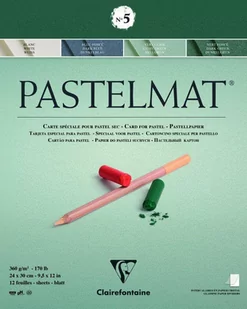 Blok papierów do pasteli, serii Pastelmat to wyjątkowa oferta dla miłośników prac w tzw. technikach suchych. Arkusze papieru są niezwykłym połączeniem delikatności i chropowatości powierzchni. Faktura papieru przypomina trochę drobnoziarnisty papier ścierny, dzięki czemu drobinki pigmentu mają dobrą przyczepność. Ta wyjątkowość papieru sprawia że możliwe jest nakładanie kilku warstw kolorów nadając rysunkowi głębi oraz to, że nie jest konieczne stosowanie fiksatywy przy każdej nakładanej warstwie.