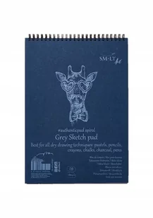 SMLTArt Szkicownik ŻYRAFA szary papier na spirali A5 180G 20ARK SMLTArt Authentic Grey Sketch - szary papier do szkicowania ołówkami, kredkami, pastelami, kredą, węglem czy pisakami. Włókna bawełny zawarte w tym papierze nadają mu swojego rodzaju szostkość, natomiast czyste włókna celulozowe dodają objętości i sprawiają, że papier jest mocniejszy. Papier bezkwasowy. Strony mają perforacje przy spirali, dzieki czemu łatwo je wyrwać z bloku. Tył bloku to twarda tekturka - dla większego komfortu rysowania szkicownik z szarymi kartkami papier bezkwasowy z bawełną rozmiar A5 gramatura kartek 180g 20 arkuszy na spirali perforowane strony idealny do szkicowania ołówkiem, kredkami, pastelami, kredą, węglem czy pisakami