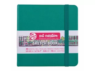 Szkicownik Talens Art Creation na gumce. Oprawa: ciemno zielona Rozmiar: 12x12cm Gramatura: 140g Ilość kartek: 80 W środku zakładka ze sznureczka.