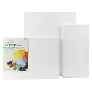 Zestaw składa się z 3 podobrazi o wymiarach: 20 x 40 cm -1 sztuka 30 x 40 cm - 1 sztuka 40 x 50 cm - 1 sztuka Podobrazie jest zagruntowane. Jesteśmy wyłącznym dystrybutorem tego modelu podobrazi w Polsce dzięki czemu możemy Państwu zaoferować tak dobrą cenę. Podobrazie oferowane na tej aukcji wykonane jest z płótna bawełnianego o gramaturze 300 g/m2 naciągniętego na drewnianą ramę. Całość wykonana starannie i estetycznie.