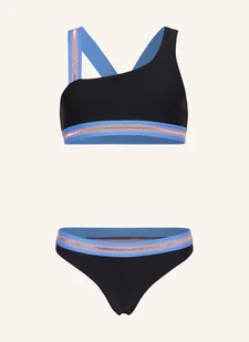 Dla dziewczynek Góra od bikini: Bez fiszbin. Bez fiszbin bocznych. Ramiączka ze wzorem w paski i błyszczącą przędzą. Elastyczny pas pod biustem ze wzorem w paski i błyszczącą przędzą.
