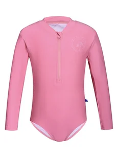 Strój kąpielowy "Marina" w kolorze jasnoróżowym - właściwości: szybkoschnący materiał - ochrona UV: 50+ - zapięcie: krótki zamek błyskawiczny - wycięcia nogawek: elastyczne - look: jednokolorowy - nadruk: logo