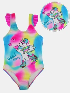 Strój kąpielowy jednoczęściowy 104-110 niebieski Strój Kąpielowy Dziewczęcy Jednoczęściowy z Jednorożcem Kolorowy 104-110 Strój kąpielowy jednoczęściowy: