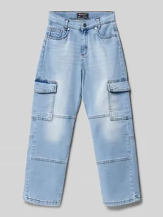 Jeansy dziecięce Blue Effect;Mieszanka bawełny z dodatkiem streczu;Krój regular fit;Szlufki;Kieszenie cargo;Szerokość w pasie w rozmiarze 140: 34 cm;Długość wewnętrzna nogawki w rozmiarze 140: 63 cm