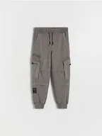 Spodnie typu jogger wykonane ze sztruksowej dzianiny.