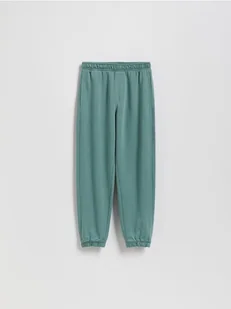Spodnie typu jogger, wykonane z bawełnianej dzianiny.