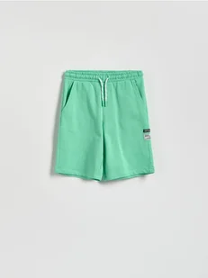 Szorty typu bermudy, wykonane z gładkiej, bawełnianej dzianiny.