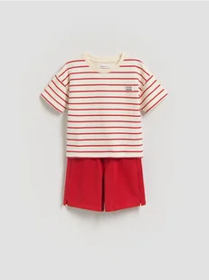 Komplet składający się z t-shirtu i szortów, wykonany z bawełnianej dzianiny.