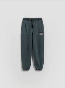 Spodnie typu jogger, wykonane z bawełnianej dzianiny.