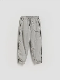 Spodnie o swobodnym fasonie, wykonane z gładkiej tkaniny.